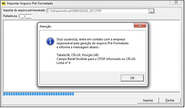 GIA ERRO - Tabela 04, CR=14, Campo Benef. Inválido para o CFOP informado no CR=10