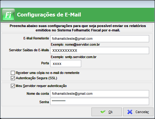 CONFIGURAÇÕES DE E-MAIL - Impossível enviar o relatório - E-Mail do destinatário inválido, Servidor de E-mail-s do remetente inválido ou fora do ar ou requer autenticação